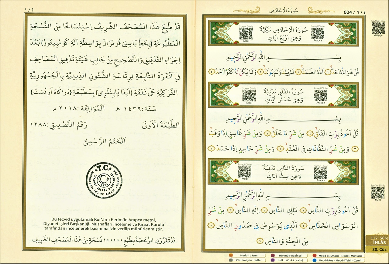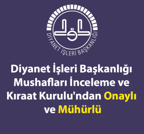 Diyanet İşleri Başkanlığı Mushafları İnceleme ve Kıraat Kurulu'ndan Onaylı ve Mühürlü