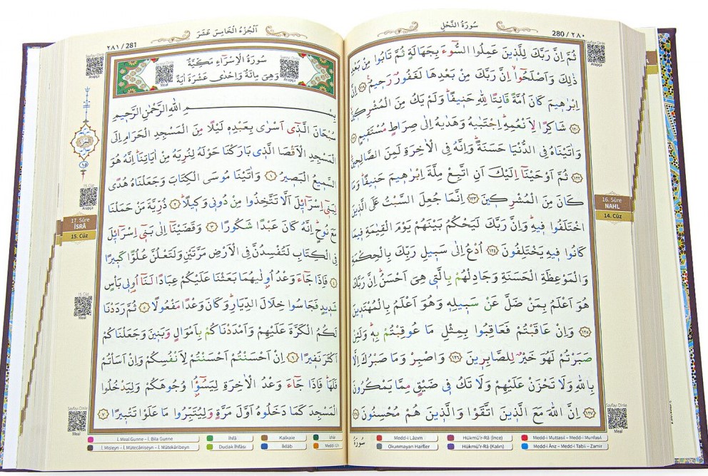 QR Kod teknolojisi Cep telefonu ile İster sayfa sayfa, ister sûre sûre, ister cüz cüz olarak ister arapça ister Türkçe Mealini dinleme özelliği Kuranı Kerimi QR kod ile dinleyebilmek için yapmanız gereken tek şey İOS, Android ya da Windows Mobile İşletim sistemi yüklü cihazınızın Store'undan herhangi bir QR code uygulaması indirmek. TAVSİYE ( İNİGMA ) ADLI PROGRAM