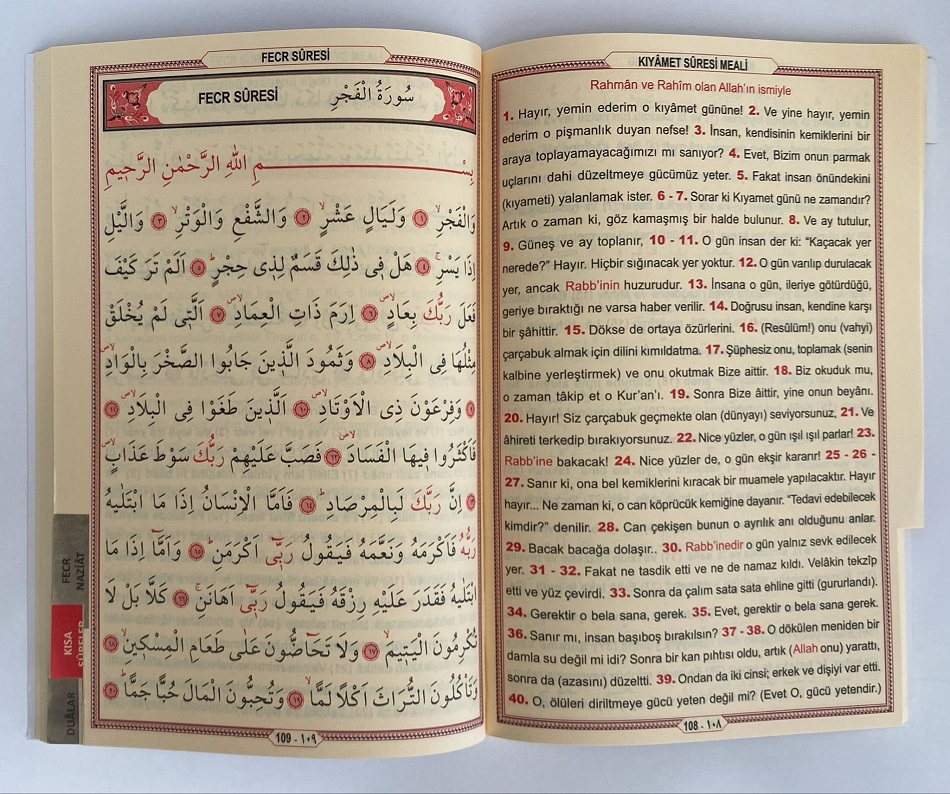 Arapça, Türkçe ( Latince ) Okunuş, Türkçe Meal