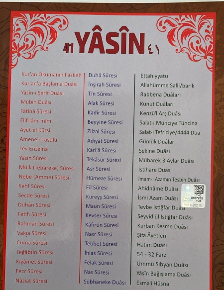 Seda Yayınları Türkçe Okunuşlu bilgisayar hatlı yasini şerif cüzü kitabı nın içerisindeki Sure ve Dualar