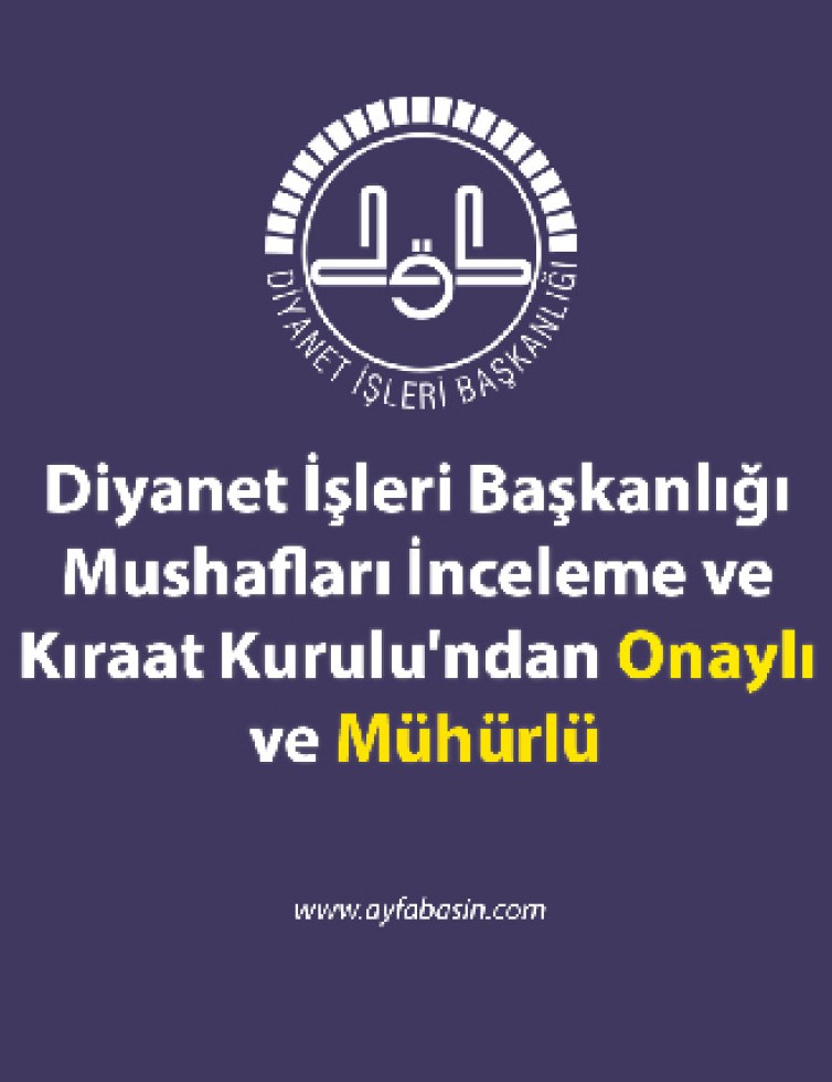 Diyanet İşleri Başkanlığı Mushafları İnceleme ve Kıraat Kurulu'ndan Onaylı ve Mühürlü