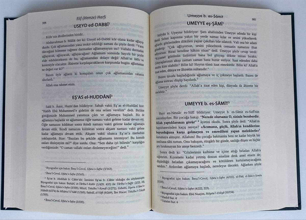 Bu kitap; sahabe döneminden başlayarak ilk üç İslami yüzyılda yaşamış önde gelen ve örnek yaşantısı ile göz dolduran âlim, âbid, ârif, zâhid, sâlih, sûfi, derviş, muttaki, civanmert, bilge ve âşıklar gibi yüzlerce şahsın; çağlar boyunca İslam toplumunun tüm kesimlerini etkileyip onlara yön veren söz ve davranışlarından örnekler sunmaktadır.