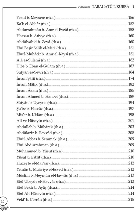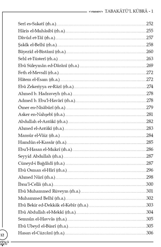 et-Tabakâtü'l-Kübrâ, Türkçemize merhum Abdülkâdir Akçiçek tarafından tercüme edilmiş ve bugüne kadar da muhtelif baskıları yapılmıştır. Yayınevi olarak, tekrar yayımlanması gerektiğine inandığımız bu kıymetli eser, daha önce M.Ü. İlahiyat Fakültesi öğretim görevlilerinden muhterem Nedim Yılmaz ve Ahmed Tobay tarafından, Arapça aslıyla karşılaştırılarak yeniden tetkîk edilip neşre hazırlanmıştır.